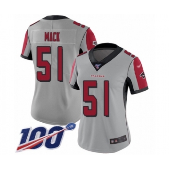 >Women's Atlanta Falcons #51 Alex Mack Limited Silver Inverted Legend 100th Season Football Jersey