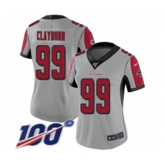 >Women's Atlanta Falcons #99 Adrian Clayborn Limited Silver Inverted Legend 100th Season Football Jersey