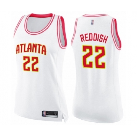 >Women's Atlanta Hawks #22 Cam Reddish Swingman White Pink Fashion Basketball Jersey