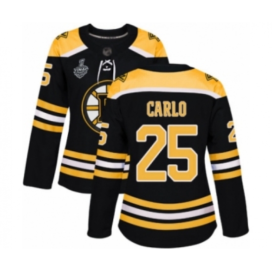 Women's Boston Bruins #25 Brandon Carlo Authentic Black Home 2019 Stanley Cup Final Bound Hockey Jersey