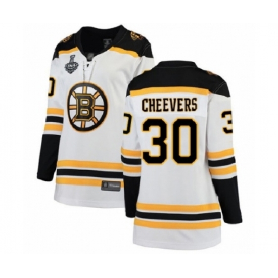 Women's Boston Bruins #30 Gerry Cheevers Authentic White Away Fanatics Branded Breakaway 2019 Stanley Cup Final Bound Hockey Jersey