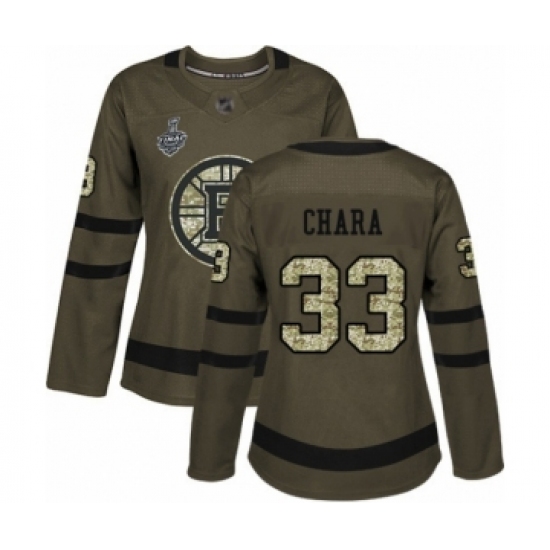 Women's Boston Bruins #33 Zdeno Chara Authentic Green Salute to Service 2019 Stanley Cup Final Bound Hockey Jersey