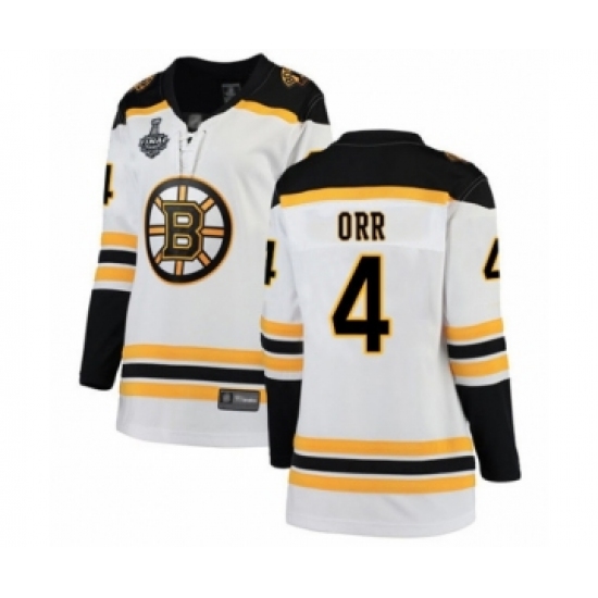Women's Boston Bruins #4 Bobby Orr Authentic White Away 2019 Stanley Cup Final Bound Hockey Jersey