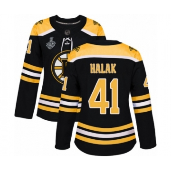 >Women's Boston Bruins #41 Jaroslav Halak Authentic Black Home 2019 Stanley Cup Final Bound Hockey Jersey