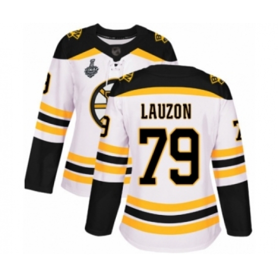 Women's Boston Bruins #79 Jeremy Lauzon Authentic White Away 2019 Stanley Cup Final Bound Hockey Jersey