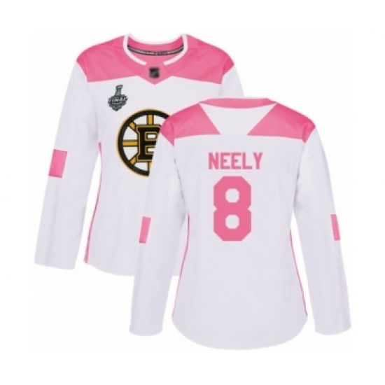 Women's Boston Bruins #8 Cam Neely Authentic White Pink Fashion 2019 Stanley Cup Final Bound Hockey Jersey