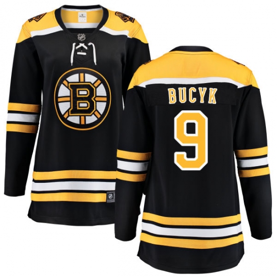Home>NHL>Boston Bruins>Johnny Bucyk>Women's Boston Bruins #9 Johnny Bucyk Authentic Black Home Fanatics Branded Breakaway NHL Jersey