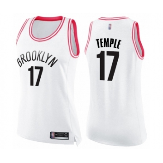 Women's Brooklyn Nets #17 Garrett Temple Swingman White Pink Fashion Basketball Jersey