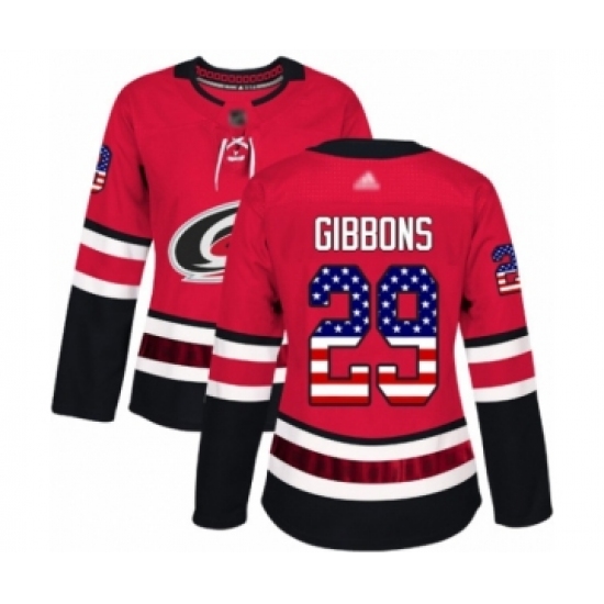 Women's Carolina Hurricanes #29 Brian Gibbons Authentic Red USA Flag Fashion Hockey Jersey