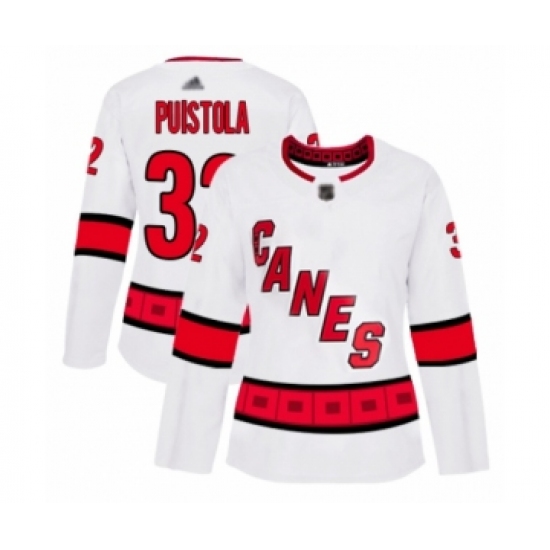 >Women's Carolina Hurricanes #32 Patrik Puistola Authentic White Away Hockey Jersey