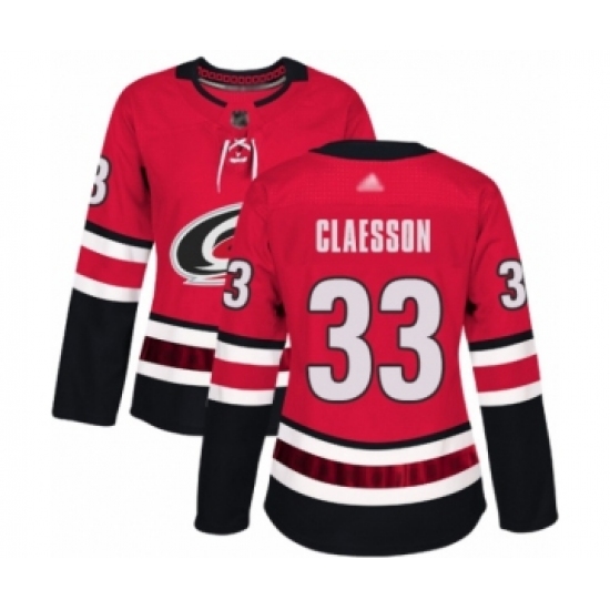 Women's Carolina Hurricanes #33 Fredrik Claesson Authentic Red Home Hockey Jersey