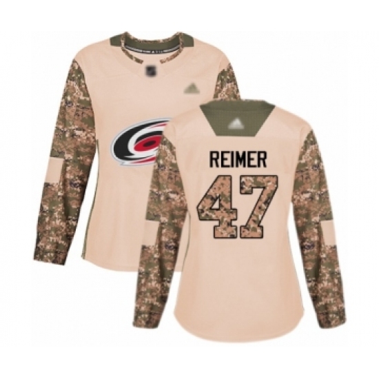 >Women's Carolina Hurricanes #47 James Reimer Authentic Camo Veterans Day Practice Hockey Jersey