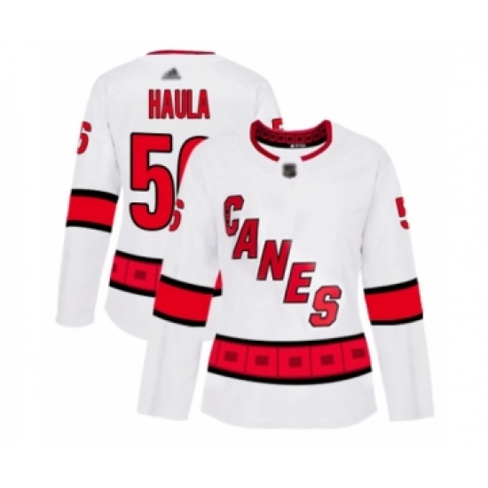 Women's Carolina Hurricanes #56 Erik Haula Authentic White Away Hockey Jersey