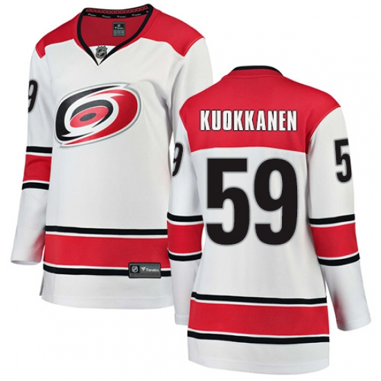 Home>NHL>Carolina Hurricanes>Janne Kuokkanen>Women's Carolina Hurricanes #59 Janne Kuokkanen Authentic White Away Fanatics Branded Breakaway NHL Jersey