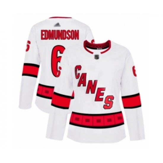 Women's Carolina Hurricanes #6 Joel Edmundson Authentic White Away Hockey Jersey