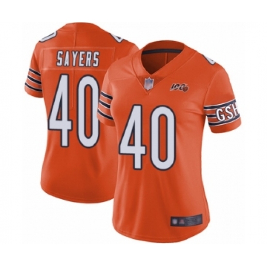>Women's Chicago Bears #40 Gale Sayers Orange Alternate 100th Season Limited Football Jersey