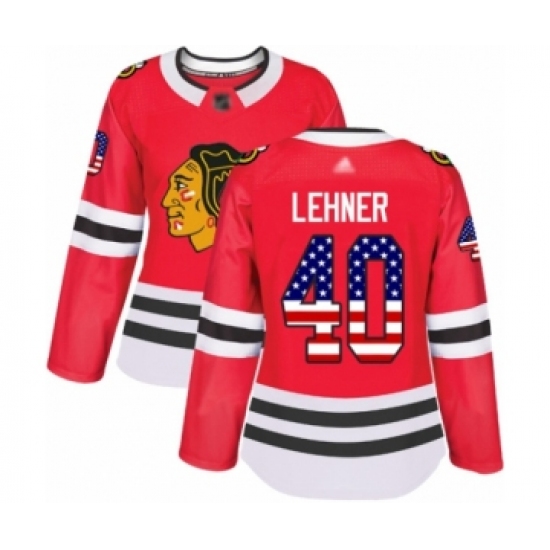 Women's Chicago Blackhawks #40 Robin Lehner Authentic Red USA Flag Fashion Hockey Jersey