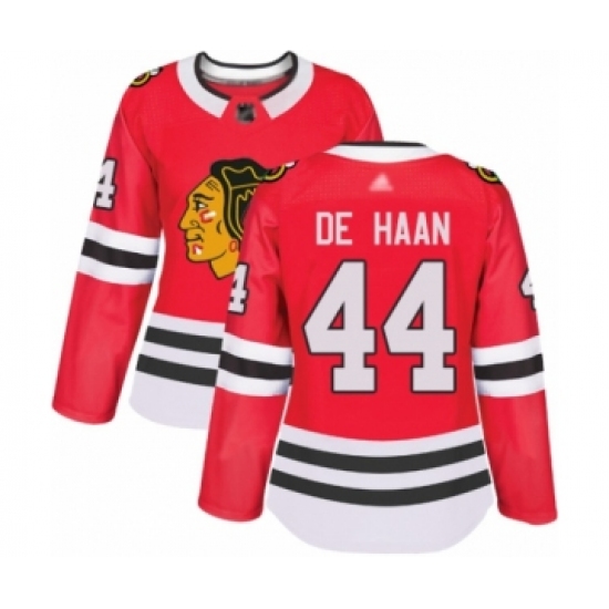 Women's Chicago Blackhawks #44 Calvin De Haan Authentic Red Home Hockey Jersey