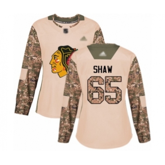 >Women's Chicago Blackhawks #65 Andrew Shaw Authentic Camo Veterans Day Practice Hockey Jersey
