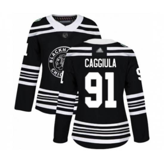>Women's Chicago Blackhawks #91 Drake Caggiula Authentic Black 2019 Winter Classic Hockey Jersey
