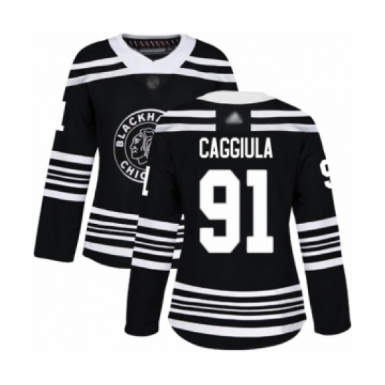 >Women's Chicago Blackhawks #91 Drake Caggiula Authentic Black Alternate Hockey Jersey