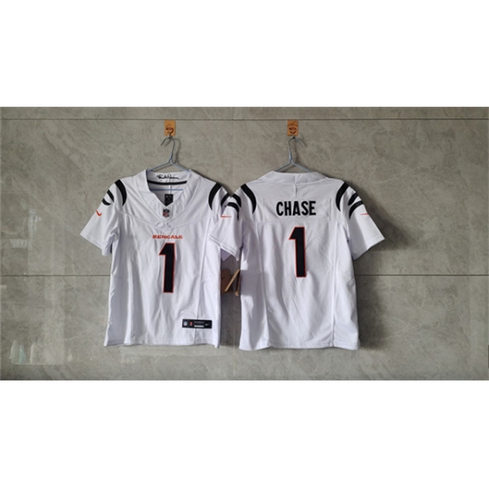 >Women's Cincinnati Bengals #1 Ja'Marr Chase White F.U.S.E. Vapor Football Stitched Jersey(Run Small)