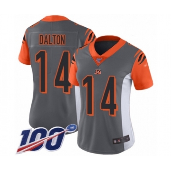 Women's Cincinnati Bengals #14 Andy Dalton Limited Silver Inverted Legend 100th Season Football Jersey