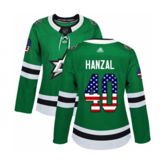>Women's Dallas Stars #40 Martin Hanzal Authentic Green USA Flag Fashion Hockey Jersey