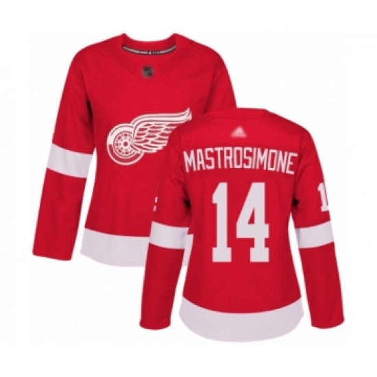 Women's Detroit Red Wings #14 Robert Mastrosimone Authentic Red Home Hockey Jersey