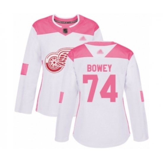 Women's Detroit Red Wings #74 Madison Bowey Authentic White Pink Fashion Hockey Jersey