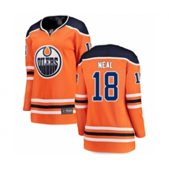 >Women's Edmonton Oilers #18 James Neal Authentic Orange Home Fanatics Branded Breakaway Hockey Jersey
