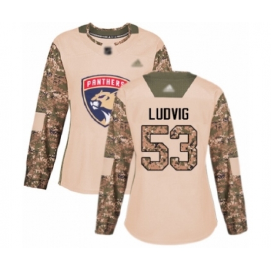 >Women's Florida Panthers #53 John Ludvig Authentic Camo Veterans Day Practice Hockey Jersey
