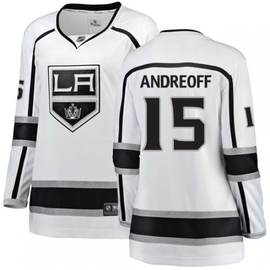 Home>NHL>Los Angeles Kings>Andy Andreoff>Women's Los Angeles Kings #15 Andy Andreoff Authentic White Away Fanatics Branded Breakaway NHL Jersey