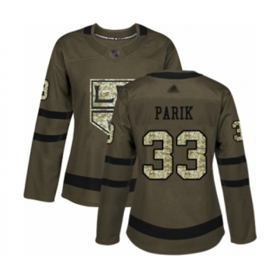 >Women's Los Angeles Kings #33 Lukas Parik Authentic Green Salute to Service Hockey Jersey