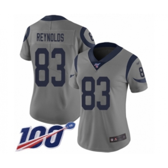 >Women's Los Angeles Rams #83 Josh Reynolds Limited Gray Inverted Legend 100th Season Football Jersey