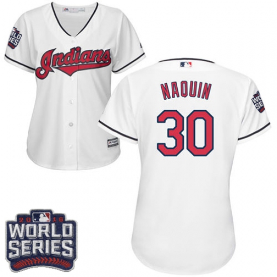 Women's Majestic Cleveland Indians #30 Tyler Naquin Authentic White Home 2016 World Series Bound Cool Base MLB Jersey