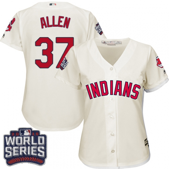 Home>MLB>Cleveland Indians>Cody Allen>Women's Majestic Cleveland Indians #37 Cody Allen Authentic Cream Alternate 2 2016 World Series Bound Cool Base MLB Jersey