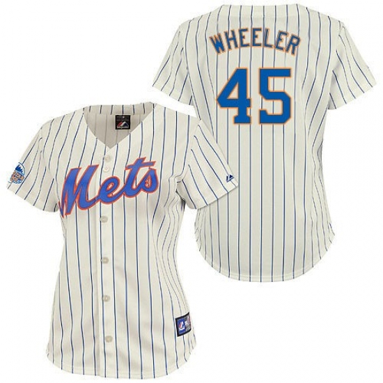 Women's Majestic New York Mets #45 Zack Wheeler Replica Cream/Blue Strip MLB Jersey
