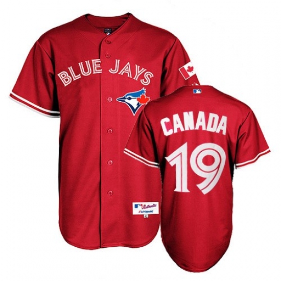 Home>MLB>Toronto Blue Jays>Jose Bautista>Women's Majestic Toronto Blue Jays #19 Jose Bautista Replica Red Canada Day MLB Jersey