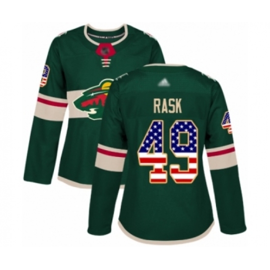 >Women's Minnesota Wild #49 Victor Rask Authentic Green USA Flag Fashion Hockey Jersey