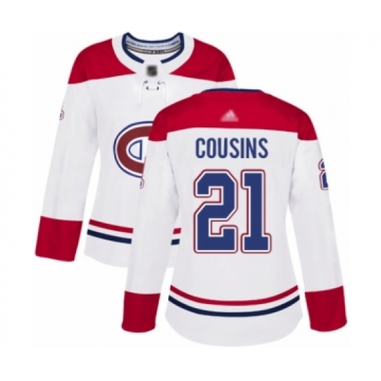 Women's Montreal Canadiens #21 Nick Cousins Authentic White Away Hockey Jersey