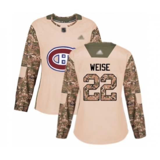 >Women's Montreal Canadiens #22 Dale Weise Authentic Camo Veterans Day Practice Hockey Jersey