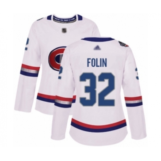 >Women's Montreal Canadiens #32 Christian Folin Authentic White 2017 100 Classic Hockey Jersey