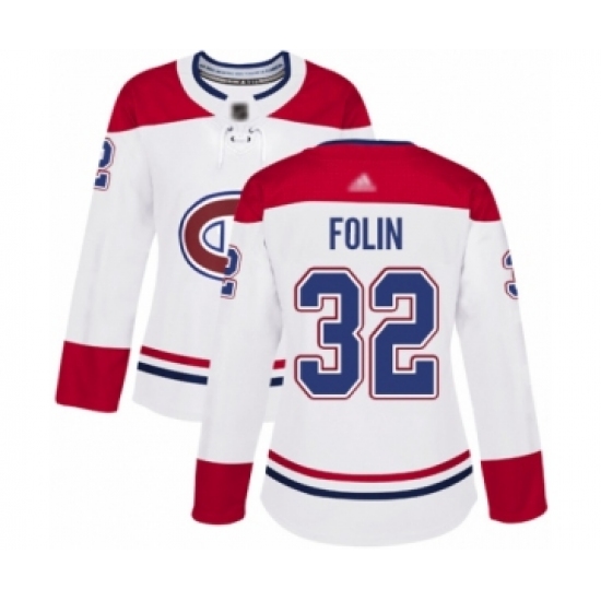 Women's Montreal Canadiens #32 Christian Folin Authentic White Away Hockey Jersey