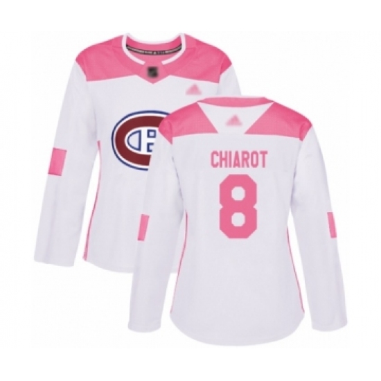 Women's Montreal Canadiens #8 Ben Chiarot Authentic White Pink Fashion Hockey Jersey