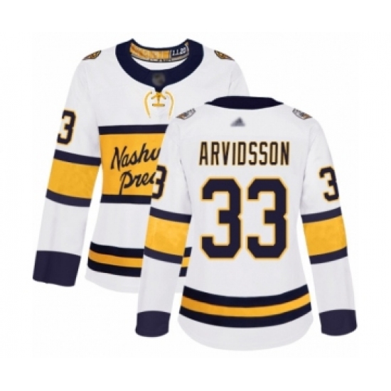 >Women's Nashville Predators #33 Viktor Arvidsson Authentic White 2020 Winter Classic Hockey Jersey