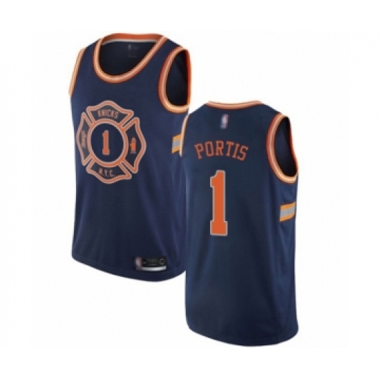 Men's New York Knicks #1 Bobby Portis Authentic Navy Blue Basketball Jersey - City Edition