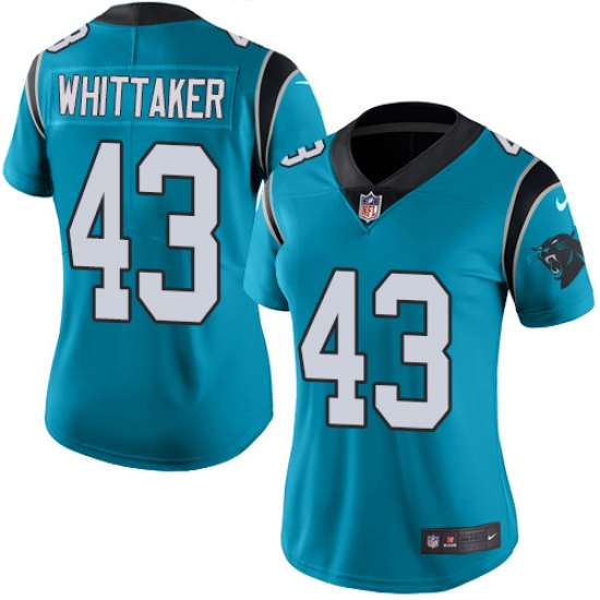 Women's Nike Carolina Panthers #43 Fozzy Whittaker Limited Blue Rush Vapor Untouchable NFL Jersey