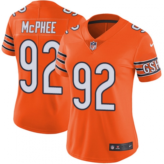 Home>NFL>Chicago Bears>Pernell McPhee>Women's Nike Chicago Bears #92 Pernell McPhee Limited Orange Rush Vapor Untouchable NFL Jersey