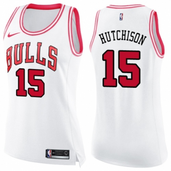 Women's Nike Chicago Bulls #15 Chandler Hutchison Swingman White/Pink Fashion NBA Jersey